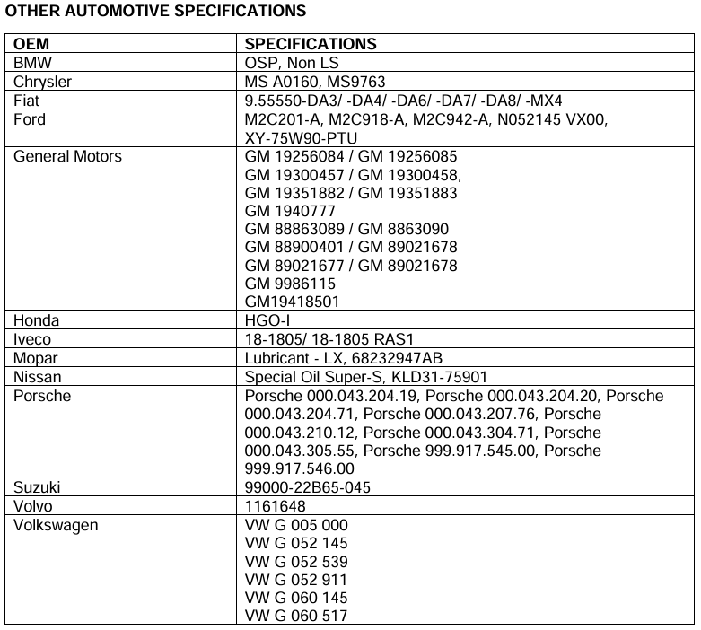 Lietojama arī daudzu citu ražotāju pasažieru komerctransporta asu piedziņas eļļošanai ar maksimālajiem eļļas maiņas intervāliem.